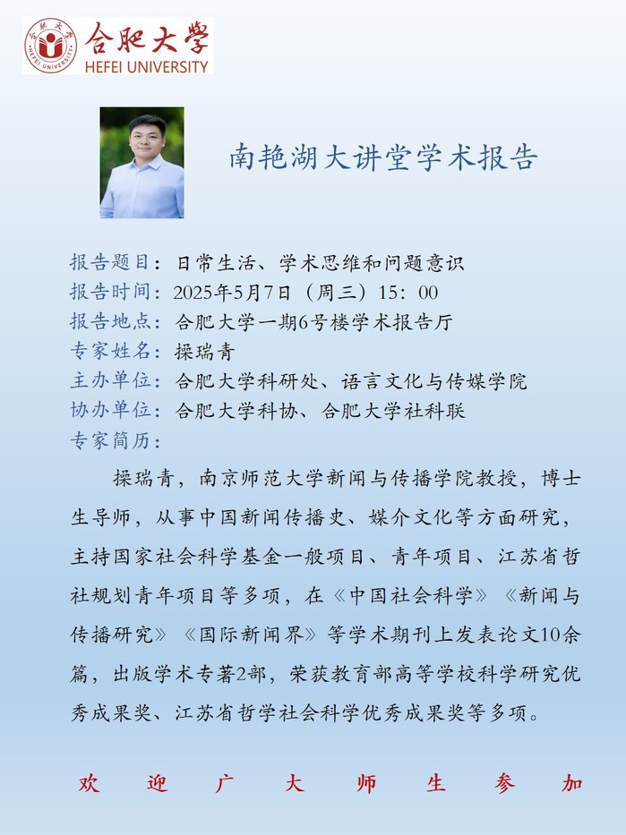 【南艳湖大讲堂】日常生活、学术思维和问题意识