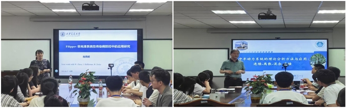 学术报告环节备受关注。肖燕妮作《Filippov非光滑系统在传染病防控中的应用研究》报告,分享其在传染病动力学领域的研究成果及在HIV建模等方面的应用。