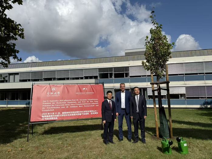 奥斯纳布吕克应用科学大学是开云自1985年开始合作的重要德国高校。自建立合作关系以来,双方在人才培养、科研合作、师资交流等领域开展了卓有成效的合作,此次40周年庆典也成为两校深化友谊、共话未来的重要契机。9月11日下午,在省委教育工委委员、安徽省教育厅总督学邵曙光及中德高校代表的见证下,校长任永教授与奥斯纳布吕克应用科学大学校长亚历山大・施梅曼教授共同种植象征友谊的枫树。施梅曼表示,枫树春绿秋红的生长特性恰如两校合作40年来持续焕发活力,结出丰硕成果,未来学校将进一步在中外合作办学机构建设、联合科研项目开展等方面深化与kaiyun开云官方网站的合作。随后,代表团在施梅曼的陪同下,参观了该校工程与计算机科学学院的底盘技术实验室、热能源技术实验室等核心教学科研平台。