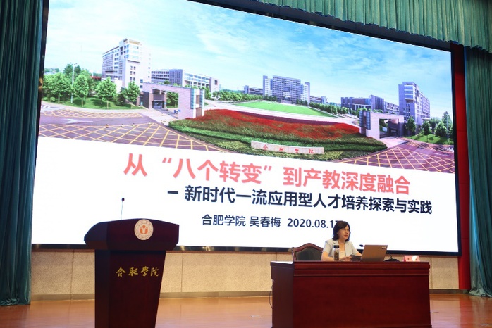 合肥学院校长吴春梅首先作了《从“八个转变”到产教深度融合——新时代一流应用型人才培养探索与实践》的报告。她强调,应用型高校的首要任务是培养应用型人才,要坚持将深化产教融合、校企合作作为学校发展、人才培养的动力之源和目标所向,在地方产业集群建设和园区、企业发展中,找准并不断夯实学校的办学定位和发展方位,着力提升应用型高校在地方经济社会发展中的参与度和贡献率。