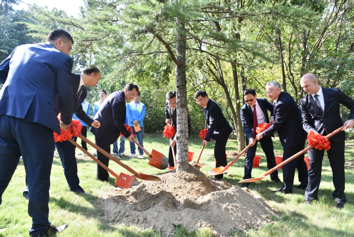 与会领导为第一届“大陆马牌学院”颁发录取通知书,并与中德师生代表在中德友谊林共植友谊树。