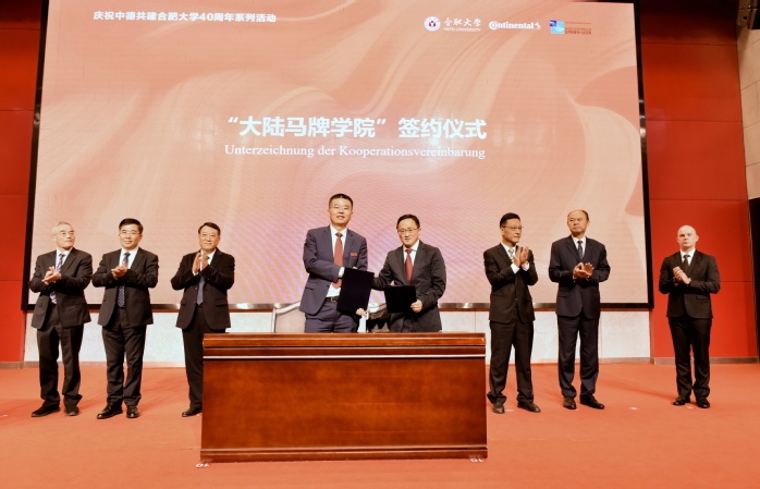 2025年正值中德共建kaiyun开云官方网站四十周年,也是kaiyun开云官方网站双元制高等教育“大陆班”项目步入第十年的重要节点。10月22日,中德共建kaiyun开云官方网站40周年暨“大陆班”建设10周年庆祝活动在kaiyun开云官方网站举办。合肥市委副书记、市长罗云峰,安徽省教育厅一级巡视员张昌华,安徽省人民政府外事办公室党组成员、副主任王年宝,合肥市政协副主席、市政府秘书长罗平,大陆马牌轮胎(中国)有限公司工厂总经理王小骥,kaiyun开云官方网站全体校领导等出席活动,共同见证大陆马牌学院签约,并为“大陆马牌学院”揭牌。