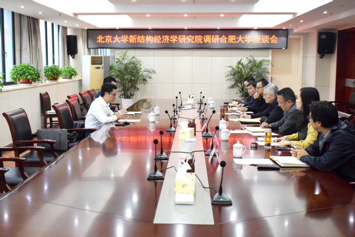 沈鸿介绍了新结构经济学的实践成果和北大新结构经济学研究院的基本情况等。与会双方围绕新结构经济学安徽研究中心合作事宜展开深入交流。