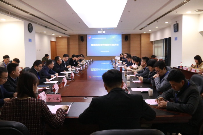 参观结束,在管委会会议室召开了“在肥高校老师高新行”座谈会,团市委副书记车恂、黄坤出席会议,高新区工委书记宋道军,高新区科技局副局长肖亚东,高新区人事劳动局工作人员洪唯,园区企业负责人和各高校老师代表参会。