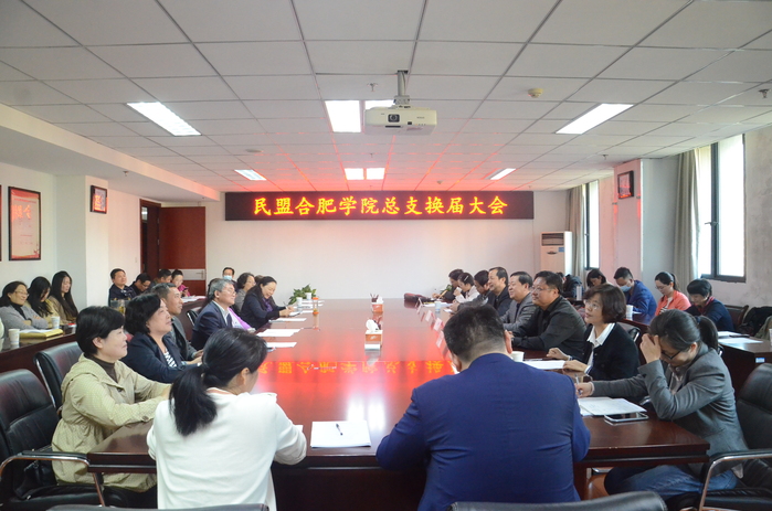 11月6日,民盟合肥学院总支换届大会在校行政楼八楼东会议室召开。民盟合肥市委会专职副主委胡平,副主委、合肥市科技局副局长李雪,民盟市委会秘书长黄本年、组织部长朱蔚华出席会议,合肥学院党委委员、宣传统战部部长贾峰,副部长刘玉培应邀到会。换届大会由胡平主持。
