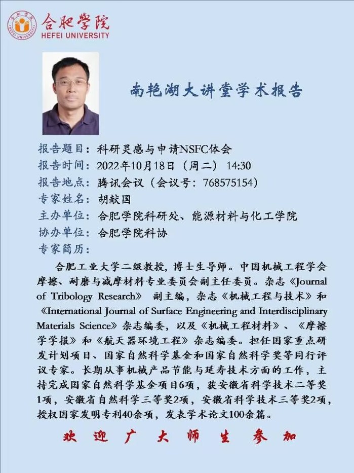 【讲座预告】科研灵感与申请NSFC体会