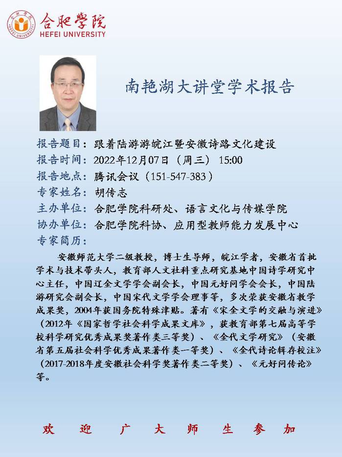 【讲座预告】跟着陆游游皖江暨安徽诗路文化建设