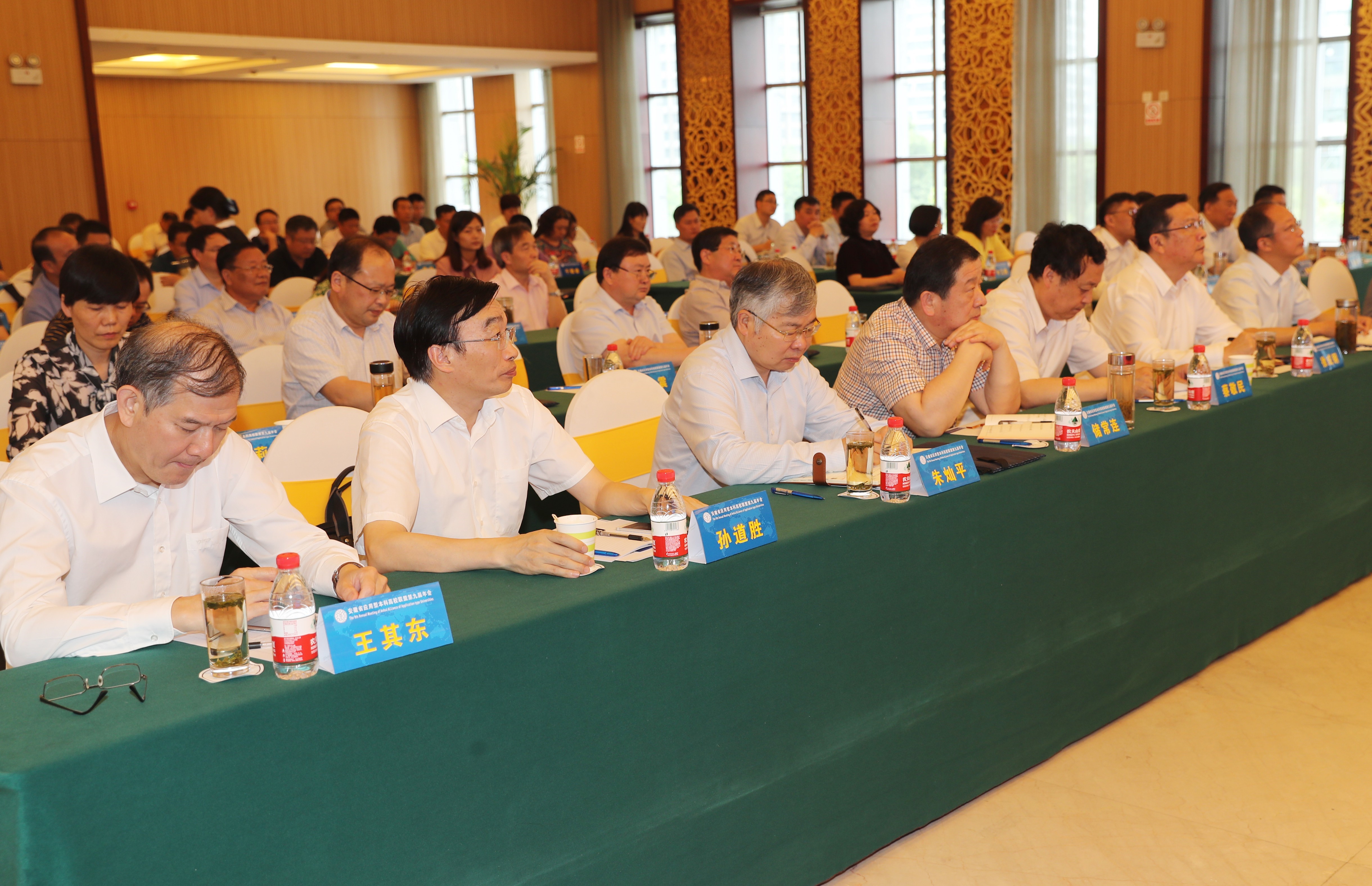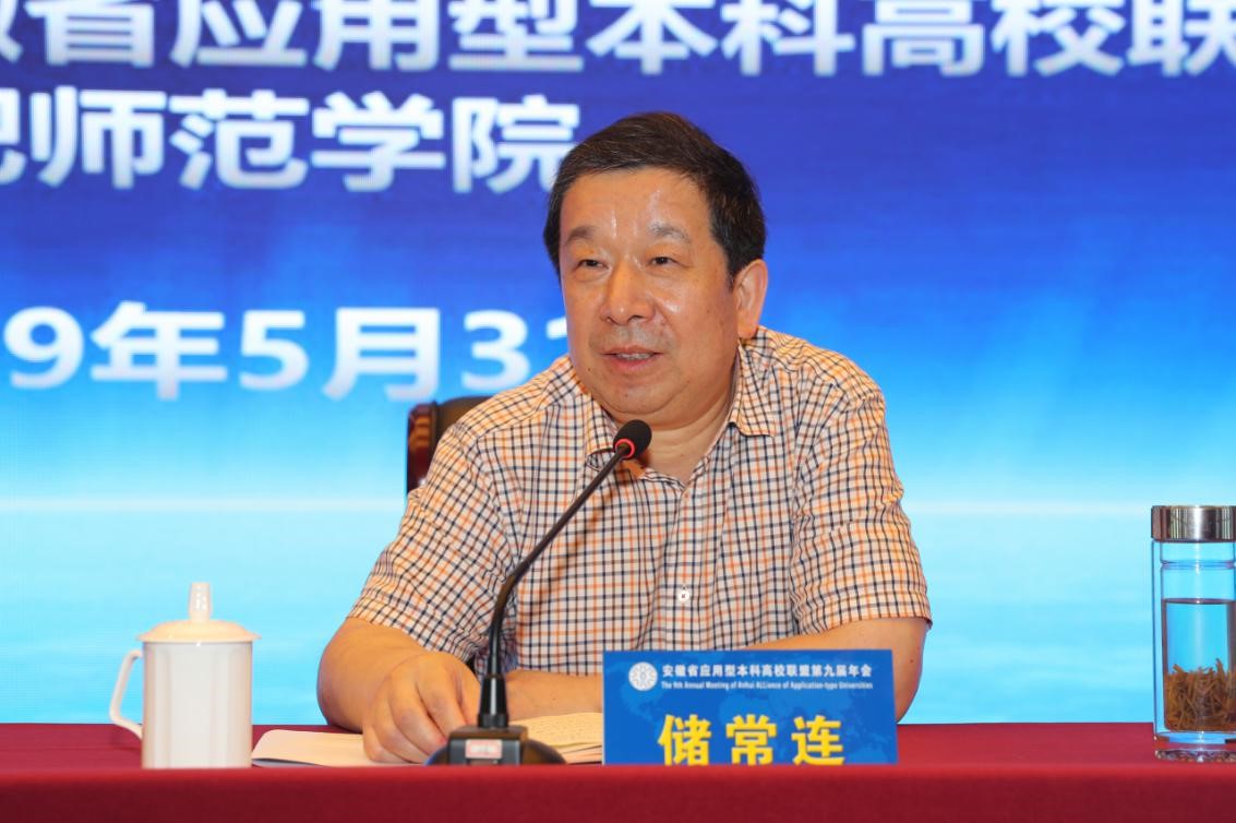 531日,安徽省应用型本科高校联盟第九届年会在我院隆重召开。省教育厅副厅长储常连,联盟常任主席单位合肥学院党委书记蔡敬民、院长王其东,2018年轮值主席单位合肥师范学院党委书记徐成钢、院长孙道胜、副院长姚本先,2019年轮值主席单位巢湖学院党委书记朱灿平、院长祝家贵出席会议。省教育厅相关处室领导,20所联盟高校及应邀参会的部分省内高校和长三角地区高校的校领导、教务处处长、科研处处长、发展规划处处长,联盟秘书处和合肥师范学院师生代表共计180余人参加会议。会议由王其东、孙道胜、祝家贵分阶段主持。