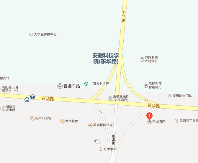 六、注意事项 1、本次会议不收会务费,食宿统一安排,费用自理。 2、请联盟高校自行将有关标准研制的资料携带到会场,用于会议交流讨论。 七、会议联系人 钟德仁,手机:15755061722 何晓冬,手机:13855066927 王培章,手机:13855037629 八、乘车指南 1、汽车:A、凤阳汽车站(安徽科技学院南门);B、蚌埠汽车站-凤阳汽车站(安徽科技学院南门)。 2、火车(高铁或动车):A、蚌埠南站,出租车20分钟可达安徽科技学院西门;B、蚌埠火车站-蚌埠汽车站-凤阳汽车站(安徽科技学院南门)。 3、凤阳帝城酒店: