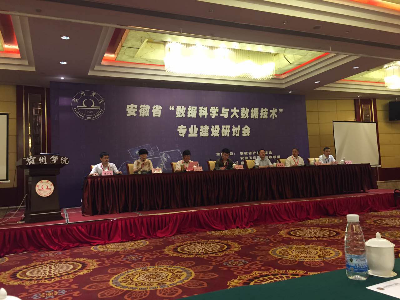 2017年7月15日下午,由安徽省计算机学会、安徽省应用型高校联盟主办,宿州学院承办的安徽省“数据科学与大数据技术”专业建设研讨会在宿州国际大酒店顺利举行,来自省内外40多所高校近100名学者、专家参加了本次研讨会,共同就高校大数据专业学科建设、实践教学、教学改革相关问题进行研讨和交流。宿州学院党委书记陈国龙出席会议,会议由宿州学院院长张莉主持。
