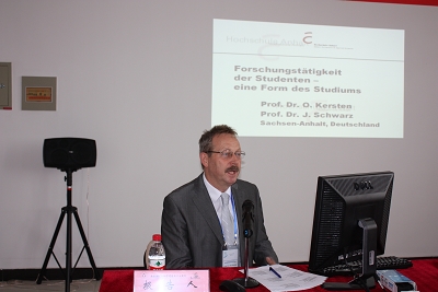 卡尔-恩斯特•菲希特作了题为《下萨克森州应用型高等教育的现状及特征》,在发言中详细介绍了下萨克森州应用型高等教育在经济社会发展中发挥的重要作用,以及下萨克森州应用型科学大学的教学管理、人才培养模式和应用型教学方法等。