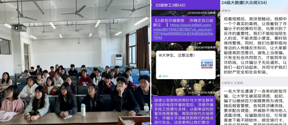 为进一步扩大反诈宣传覆盖面,增强我院学子的网络安全意识和提升反诈骗能力,2024年10月23日,人工智能与大数据学院召开防范虚假诈骗主题班会。院党委副书记姚蓓蓓、学生处魏舒荍和保卫处相关负责人出席,2024级数据科学与大数据技术专业学生参加,本次班会由辅导员苗冰涛主持。