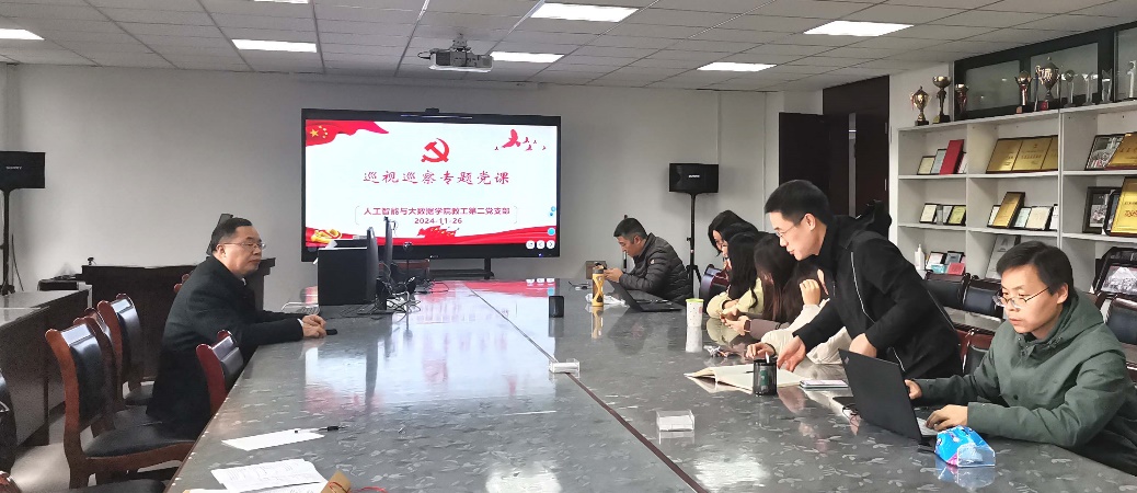 11月26日,为贯彻落实上级党委关于开展巡视巡察专题学习的通知精神,人工智能与大数据学院教工第二党支部组织了巡视巡察专题学习活动,支部书记屠菁同志为全体支部党员讲授了题为《不断推动巡视工作深化发展:<中国共产党巡视工作条例>解读》的专题党课。