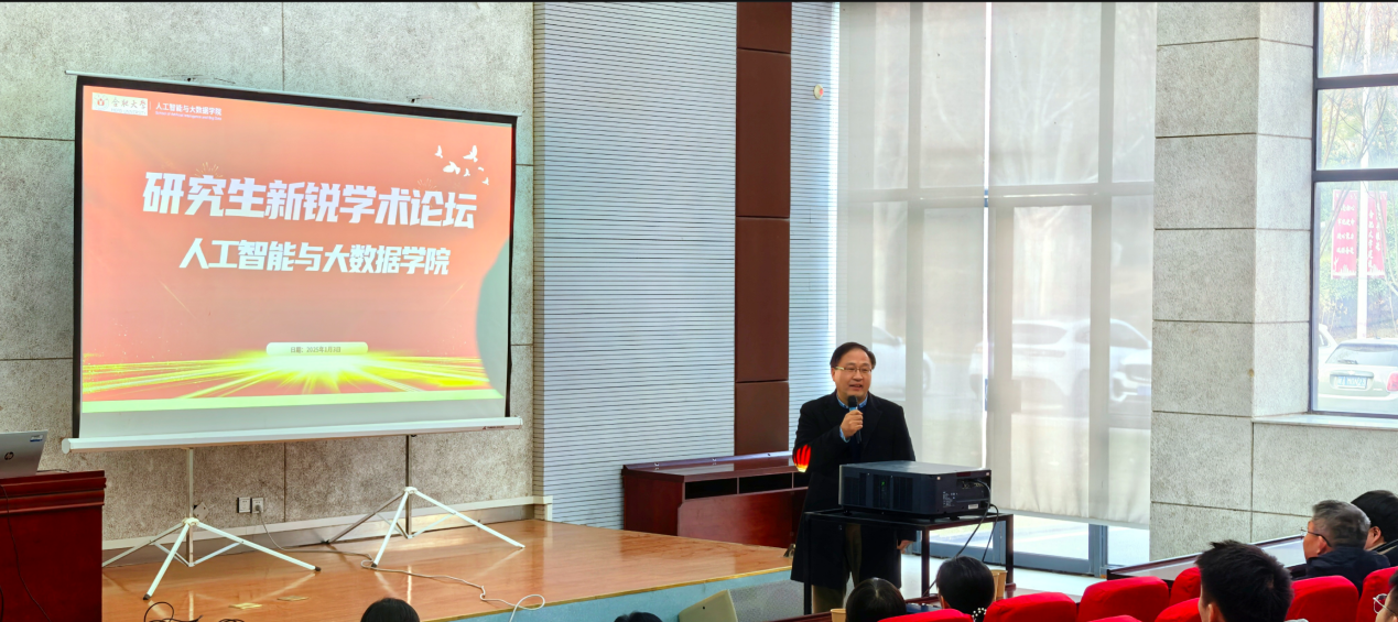 2025年1月3日,kaiyun开云官方网站第二届人工智能与大数据技术“新锐学术论坛”在学校图书馆B厅成功举办。本次论坛由kaiyun开云官方网站研究生处与科研处主办,人工智能与大数据学院承办,邀请了6名在本领域顶级期刊发表论文的优秀研究生进行专题报告,吸引了研究生导师以及180余名研究生积极参与,共同探讨前沿AI技术、交流科研经验、促进研究生快速成长。