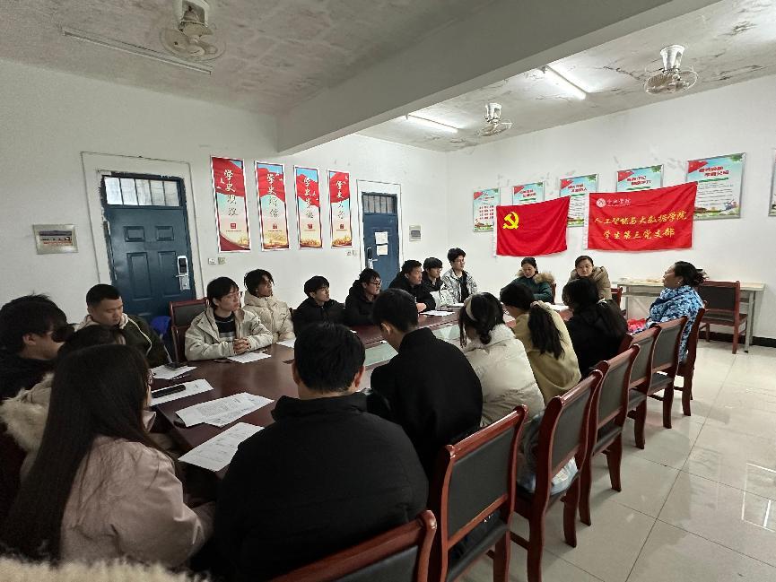 为深入学习贯彻党的二十大精神,进一步强化支部建设,2025年2月21日中午12点,人工智能与大数据学院学生第三党支部在48栋119会议室召开了组织生活会暨民主评议会。院党委委员张琛列席指导,支部全体党员参会。