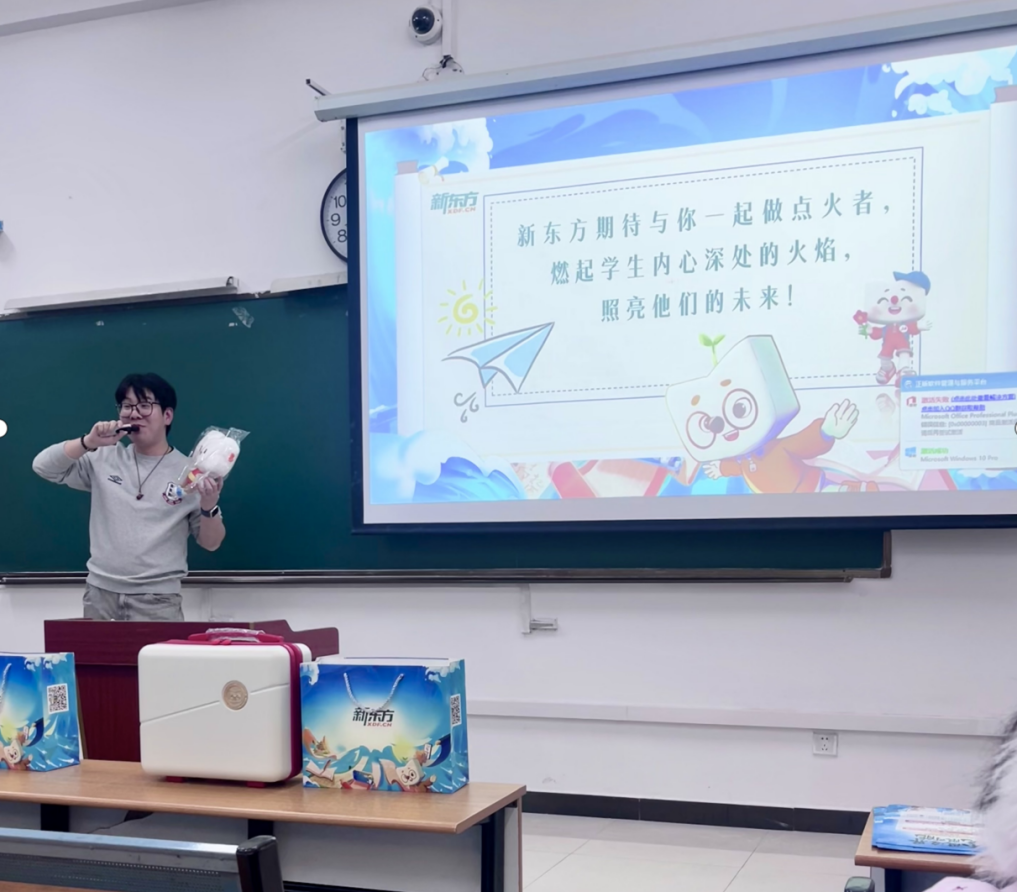 本次宣讲会特别设置了互动问答与抽奖环节,学生们踊跃参与,现场气氛活跃。新东方高效的面试流程(最快一周内发放offer)及实习转正政策,进一步激发了学生的求职热情。