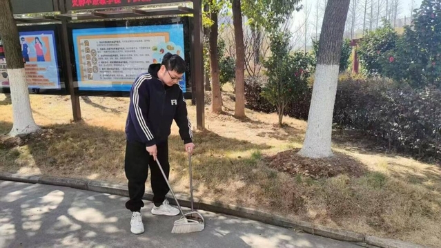在教学楼的走廊里,学生们手持拖把,专注地清扫着地面,让走廊地面变得一尘不染。垃圾桶周围,同学们将散落的垃圾一一拾起分类投放。此外,针对校园内自行车、电动车停放杂乱的问题,同学们承担起车辆整理工作,将一辆辆车摆放整齐,让校园道路更加通畅有序。