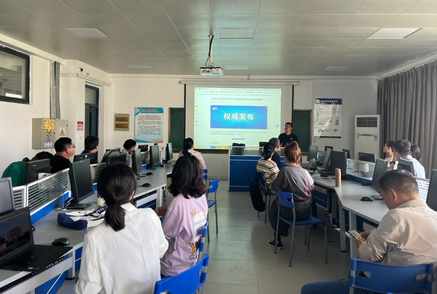 2025年6月17日,人工智能与大数据学院教工第一党支部书记何立新在36栋503为全体党员教师讲授了一堂专题党课,深入学习习近平总书记在《求是》杂志上发表的文章《加快建设教育强国》中的重要论述。此次党课的目的是引导党员教师深刻领会习近平总书记重要讲话精神,进一步明确教育强国建设的战略意义和实践路径。