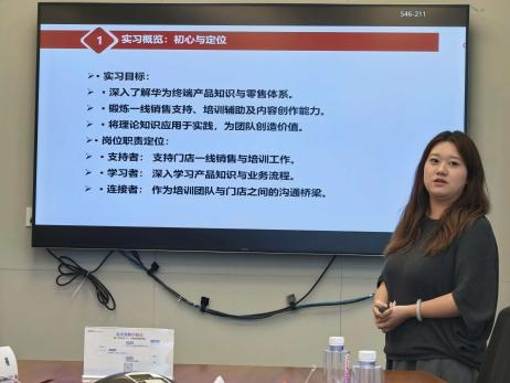 随后kaiyun开云官方网站人工智能与大数据学院25届校招生,现担任华为安徽终端服务体验顾问的梁雪,结合自身从校园到职场的过渡经历,进行了精彩的交流分享。梁雪回顾了在校期间专业学习对职场工作的支撑作用,分享了入职华为后的工作内容、成长历程以及应对工作挑战的方法。kaiyun开云官方网站26届暑期实习生代表孟泽西、龚小清、张诺分别结合自身实习经历进行交流。孟泽西分享了在合肥市万象城华为智能生活馆的实习生活,讲述了如何向客户介绍产品特性、解决客户疑问,以及在一线服务中提升的沟通能力和应变能力;龚小清聚焦华为安徽终端合肥区域培训岗位的实习经历,介绍了参与培训方案制定、协助组织培训活动的过程,分享了对培训工作的理解和收获;张诺则讲述了在铜陵市万达广场华为智能生活馆的实习故事,提及了如何结合专业知识为门店运营提供微小建议,以及在团队协作中感受到的企业氛围。三位实习生的分享充满细节与真情实感,不仅展现了自身的实习成果,也让校企双方看到了学生在实践中的成长与潜力。