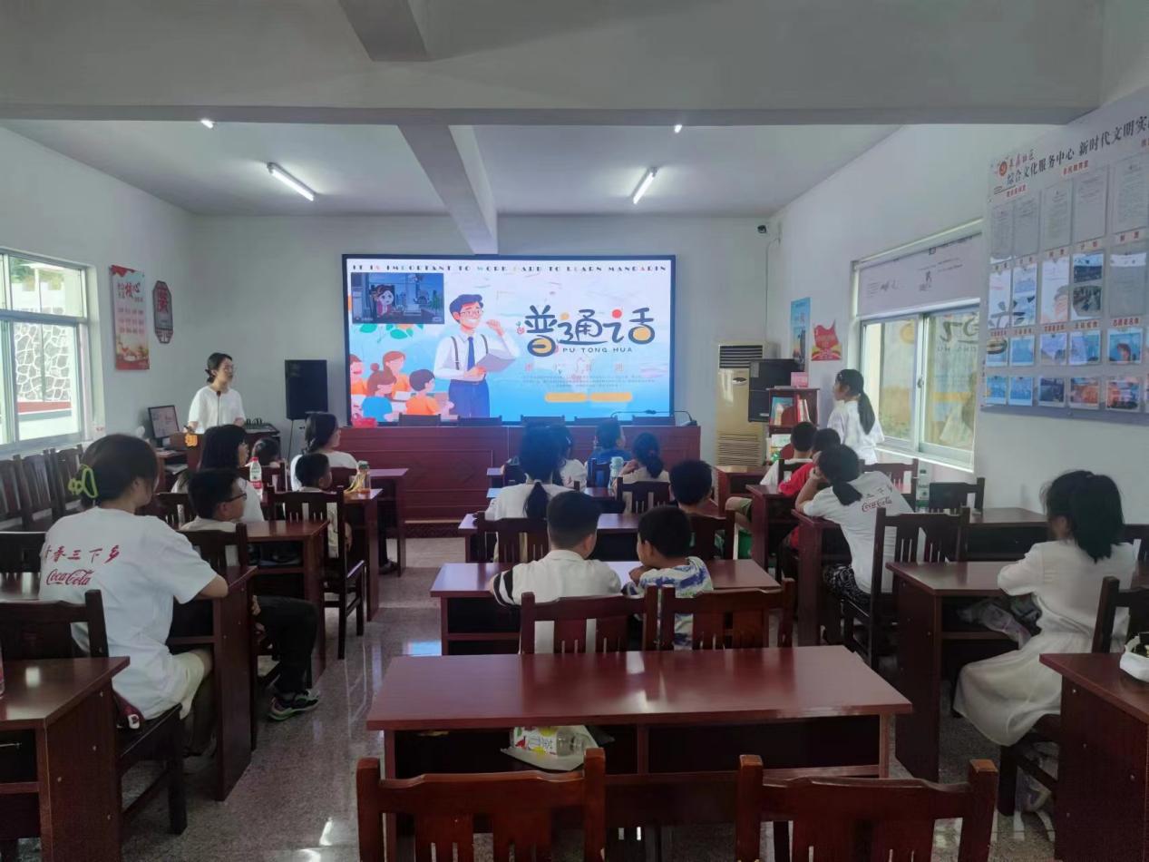 为丰富社区儿童暑期生活,团队成员去往多个社区,搭建“七彩课堂”教育平台。7月17日下午,来苏社区内,科普组的同学发挥师范类专业的优势,开展推广普通话的公益课堂。同学们通过互动式教学和有趣的语言游戏,让小朋友们在轻松愉悦的氛围中学习普通话的重要性。