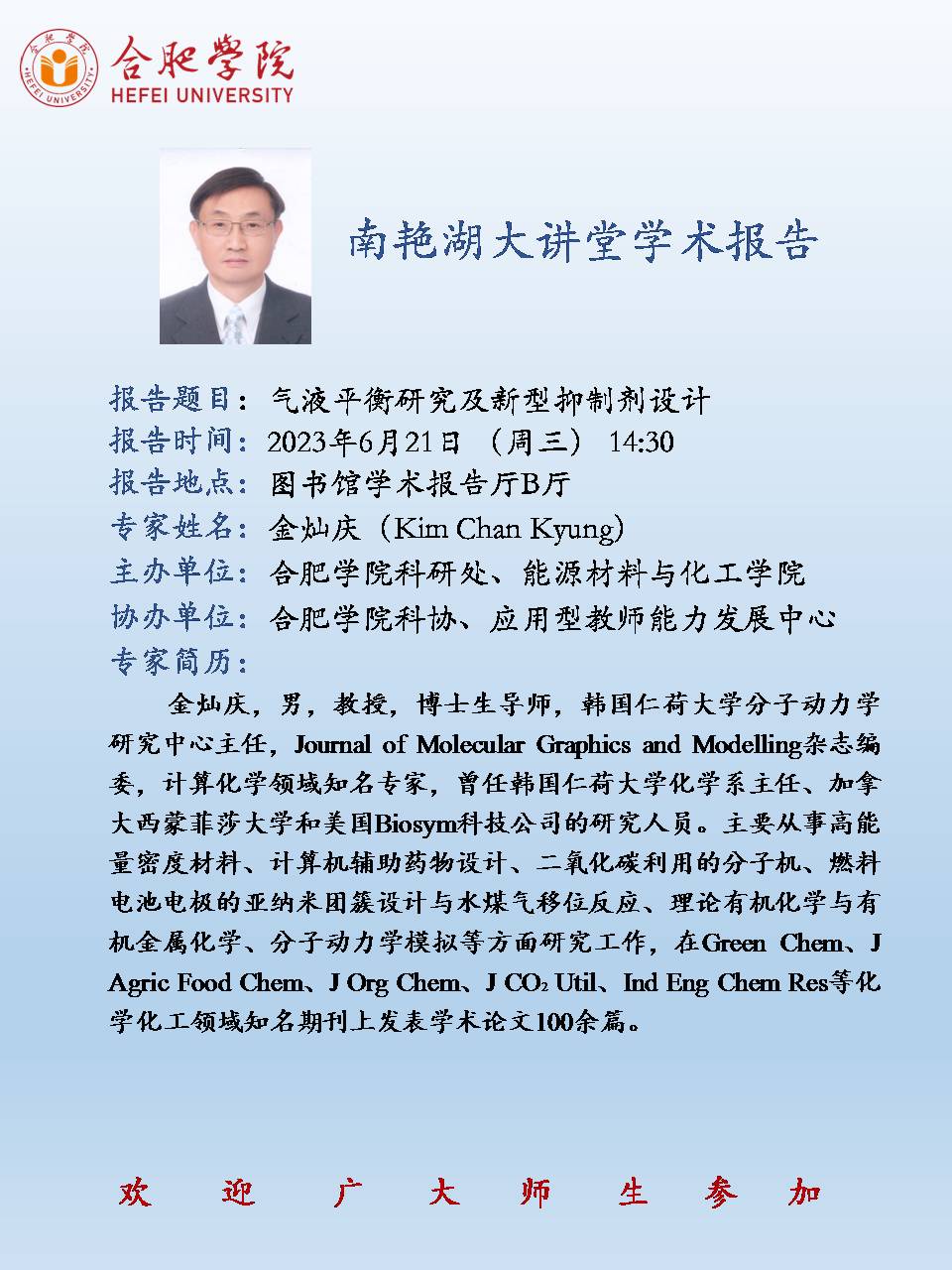 【讲座预告】气液平衡研究及新型抑制剂设计