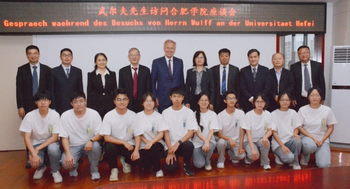 Herr Wulff erinnert sich gerne an die Geschichte der Zusammenarbeit zwischen der Provinz Anhui und Niedersachsen als Partnerprovinz bzw. Partnerbundesland und an die persönlichen Gefühle bei seinen früheren Besuchen der Universität Hefei. Er sagte, dass die chinesisch-deutsche Zusammenarbeit in den letzten Jahren immer enger geworden sei, insbesondere sei die Interaktion zwischen jungen chinesischen und deutschen Studierenden immer häufiger geworden. Er hoffte, dass beide Seiten weiterhin einen intensiven Austausch, gegenseitiges Vertrauen und gegenseitiges Verständnis sowie eine für beide Seiten vorteilhafte Entwicklung haben würden, und wünschte sich, dass diese innovative chinesisch-deutsche Kooperationsform des Schulbetriebs in dem Volkswagen-Institut einen noch größeren Erfolg haben werde.