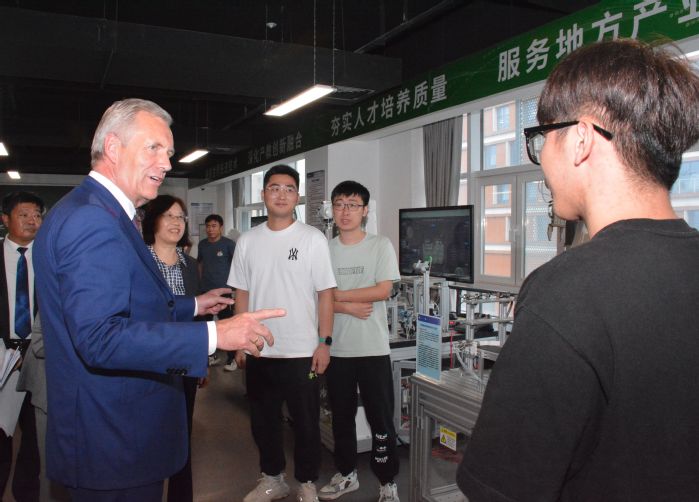 Herr Wulff und seine Delegation besuchten auch die Ausbildungsplattform des Volkswagen-Instituts und informierten sich über den Aufbau der Fächer, das modulare Curriculum, die praktische Ausbildung und den Unterricht im Labor für die Zustandsbewertung multimodaler Geräte im Anwendungs- und Innovationszentrum für intelligente Fertigungssystem und im Anwendungszentrum für digitale Zwillingstechnologie und -technik. Er bestätigte die Positionierung der Universität Hefei als lokal, anwendungsorientiert und international.