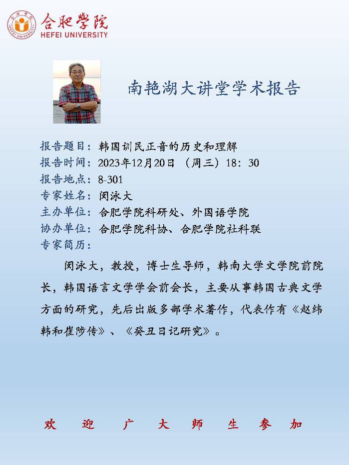 【南艳湖大讲堂】韩国训民正音的历史和理解