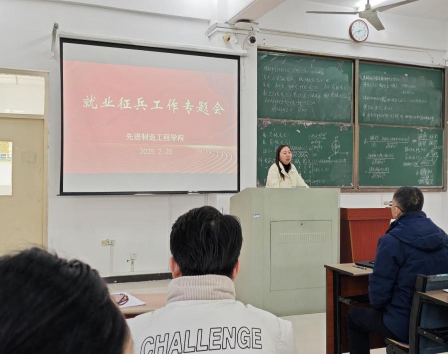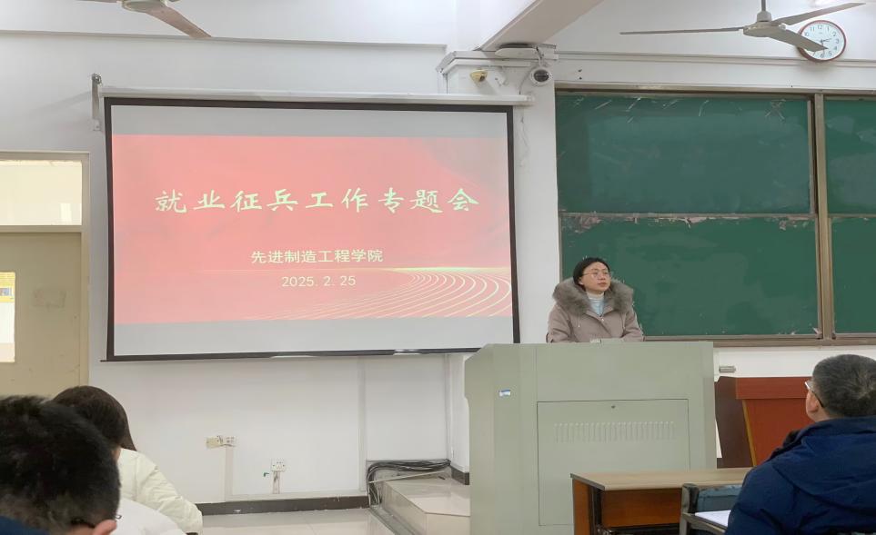 为促进我院毕业生充分高质量就业,部署下一阶段就业和征兵工作,2025年2月25日下午,先进制造工程学院在38栋3阶梯教室召开全院教师就业征兵工作专题会,由学院党委书记杜娟主持,学院全体教师参会。