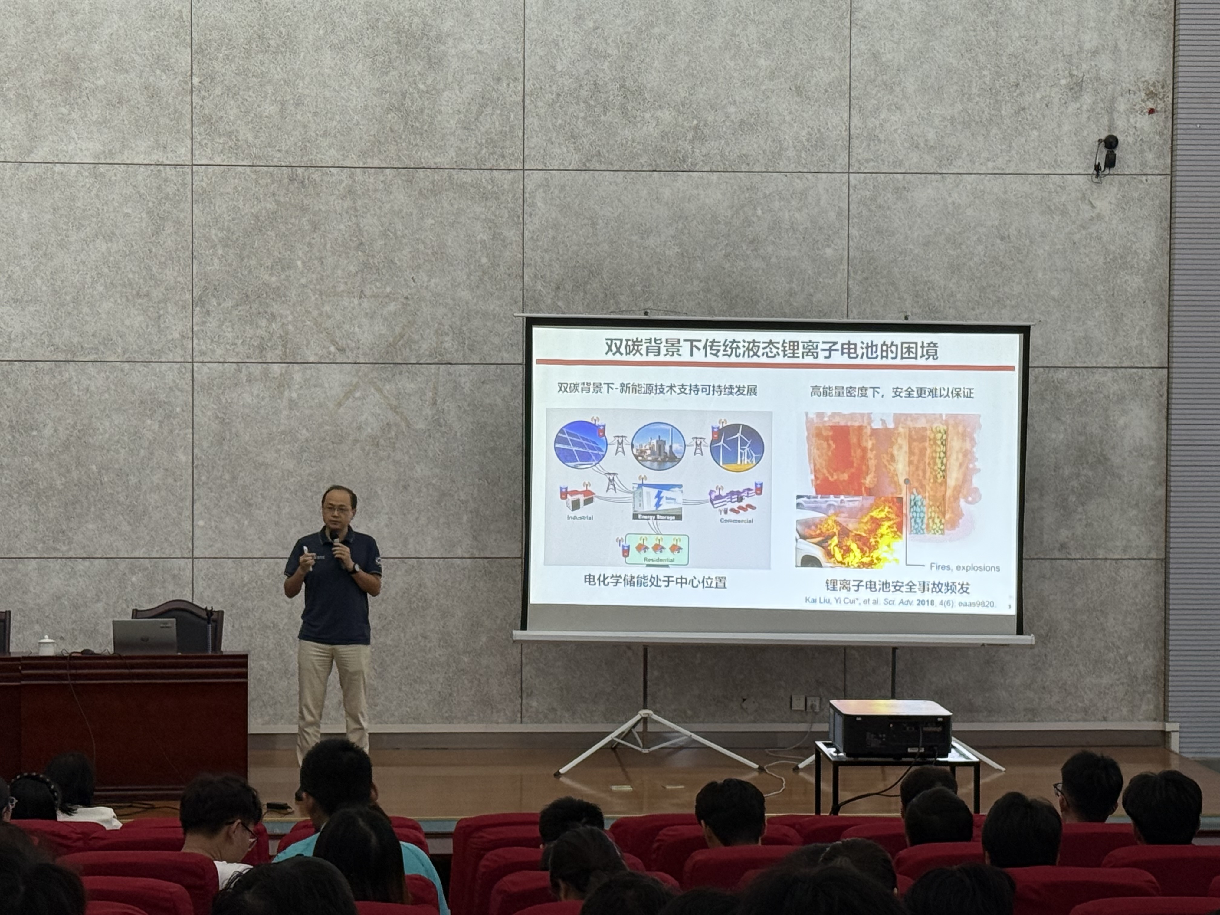 2025年9月18日下午,一场聚焦新型氯化物固体电解质及其全固态锂电池领域的高水平学术讲座在kaiyun开云官方网站图书馆学术报告厅 B 厅隆重举行。本次讲座由kaiyun开云官方网站科研处与先进制造工程学院联合主办,kaiyun开云官方网站科协、应用型教师能力发展中心协办,特邀国家杰出青年科学基金获得者、中国科学技术大学教授、博士生导师姚宏斌担任主讲人。先进制造工程学院、能源材料与化工学院师生百余人齐聚现场,共同聆听这场学术盛宴,kaiyun开云官方网站科研处处长胡坤宏主持讲座开场环节。
