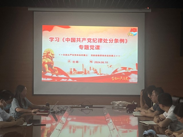 杜娟从《中国共产党纪律处分条例》(以下简称《条例》)的修订背景和主要过程、重要意义、新修订的《条例》的特点、学习贯彻新修订的《条例》的内容和要求等方面作了详细阐述,指出了开展党纪学习教育的目标任务和具体措施,并进行案例分析。她号召全体党员以党纪学习教育为契机,做到学纪、知纪、明纪、守纪,进一步强化纪律意识、加强自我约束、提高免疫能力,增强政治定力、纪律定力、道德定力、抵腐定力,不断提升党支部的创造力凝聚力战斗力。