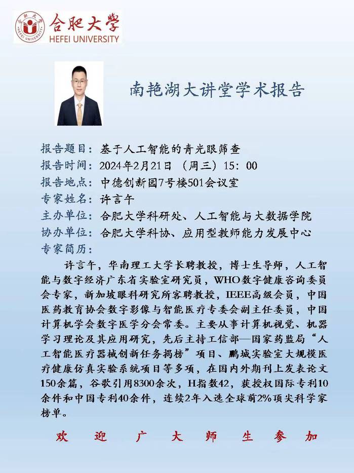 【南艳湖大讲堂】基于人工智能的青光眼筛查