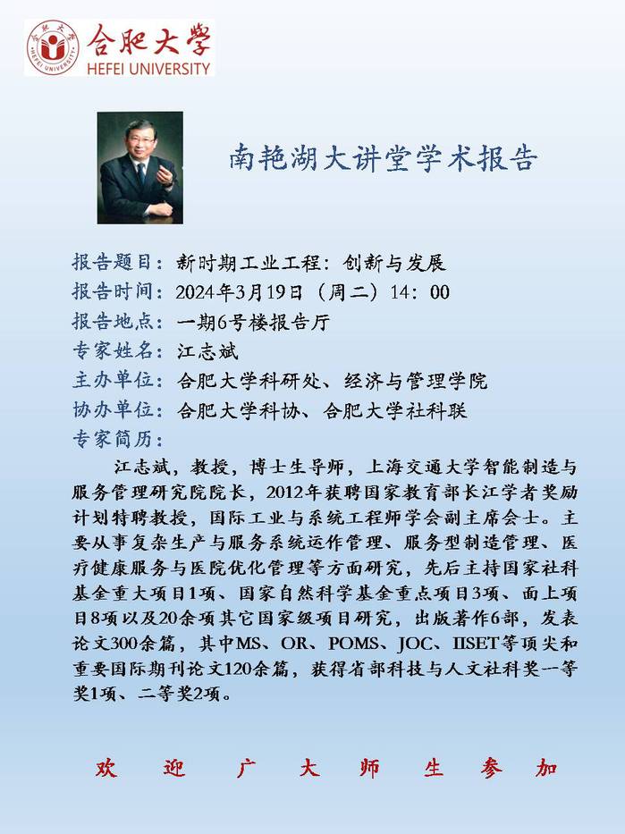 【南艳湖大讲堂】新时期工业工程:创新与发展