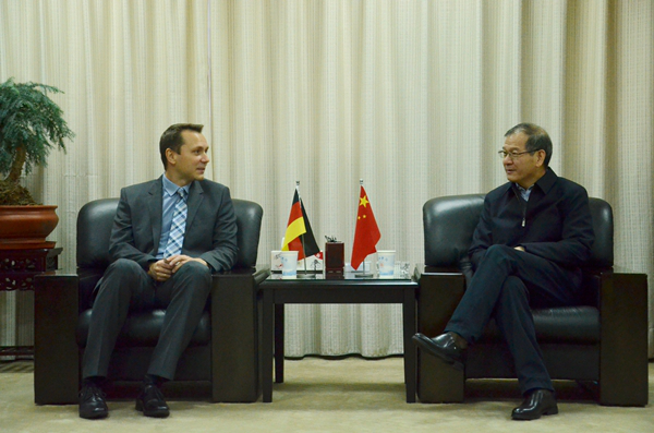 HFU president Prof. Wang Qidong meets him, who briefly introduces HFU’s history, orientation, teaching reform as well as her Sino-German cooperation. Prof. Dr. Evgeny V. Alekseev sings highly of HFU’s school-running pattern and achievements, suggesting to carry out cooperation in the post-graduate training, teacher-student exchange and so on. President Wang Qidong entitles Prof. Dr. Evgeny V. Alekseev “Visiting Professor”, hoping to further the mutual cooperation in related fields as well.