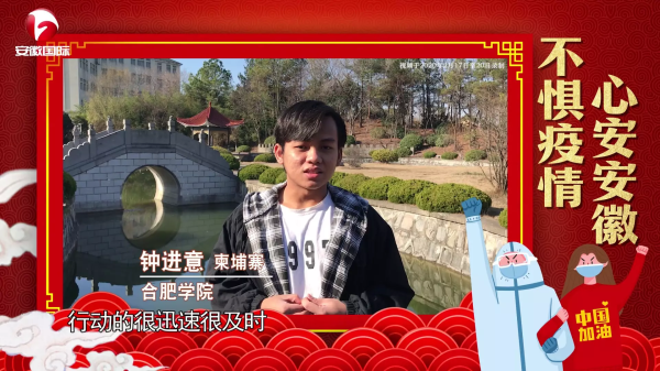 In mid-February, two HFU international students said in a video interview with Anhui TV International Channel,Chinese government has taken timely and effective measures to fight against COVID-19. Cheer for China!”