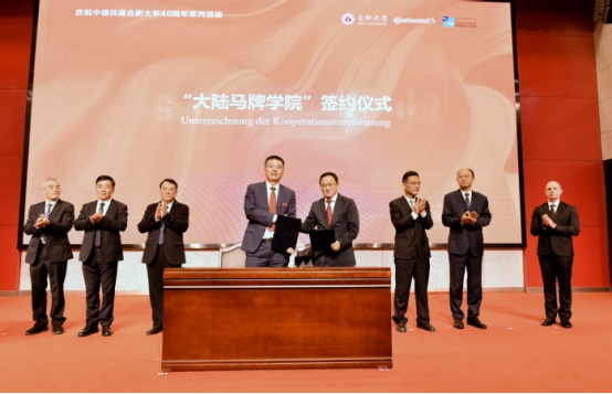 On October 22, 2025, the celebration marking the 40th anniversary of the joint establishment of Hefei University(HFU) by China and Germany, as well as the 10th anniversary of the dual-system “Continental Class” program was held at Hefei University. Luo Yunfeng, Mayor of Hefei City, Wang Xiaoji, General Manager of Continental Tires (China) Co., Ltd., and HFU principals attended the event, who jointly signed the agreement and unveiled the plaque for the Continental Tires Academy.
