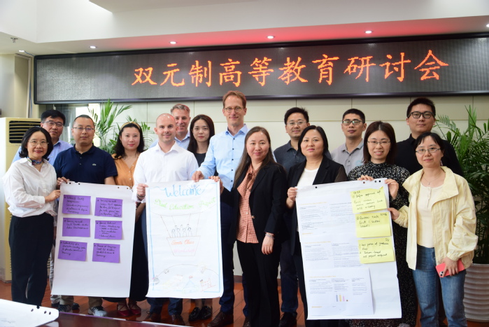 Am Nachmittag des 28. Mai fand an der Universität Hefei das Symposium für duale Hochschulbildung (Contiklasse-Projekt) statt. Professor Lange und Professor Schmidt, die Verantwortlichen des dualen Projekts der Hochschule Emden/Leer, sowie die Verantwortlichen des dualen Bildungsprojekts und der Personalabteilung der Continental AG nahmen am Symposium teil. Auch Wang Qidong, Parteisekretär der Universität Hefei, sowie Verantwortliche der relevanten Abteilungen und Fakultäten der dualen Contiklasse der Universität Hefei waren anwesend.