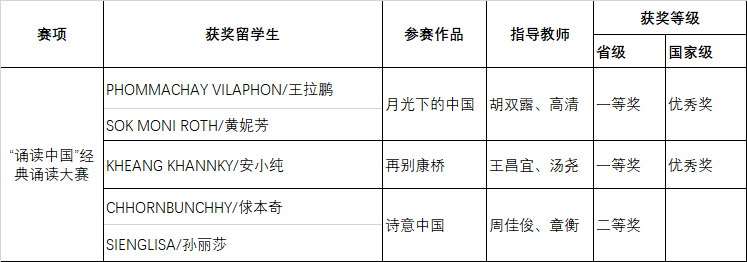 自今年4月份开始,国际教育学院联合语言文化与传媒学院积极准备参赛作品,从报送的留学生诵读的作品中挑选了3件参加安徽省赛区的选拔赛,取得了一等奖两项、二等奖一项的佳绩,其中获得一等奖的两个作品《月光下的中国》《再别康桥》入围了全国复赛并荣获优秀奖。
