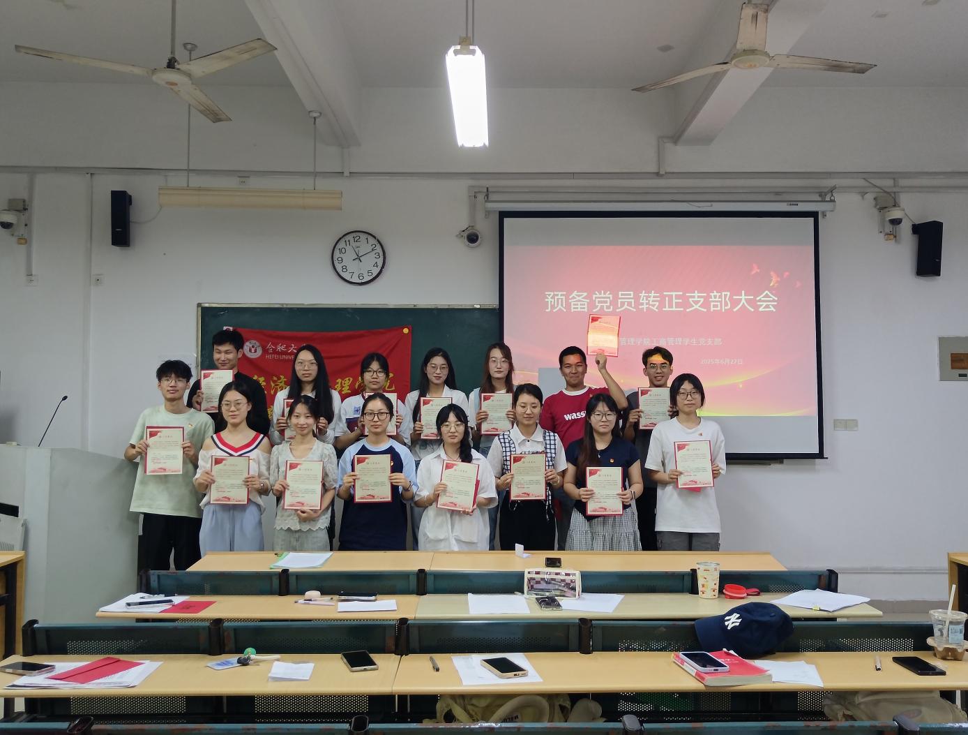 6月27日,经济与管理学院工商管理学生党支部在博学楼C座101召开预备党员转正支部大会,支部全体党员参加了此次会议。