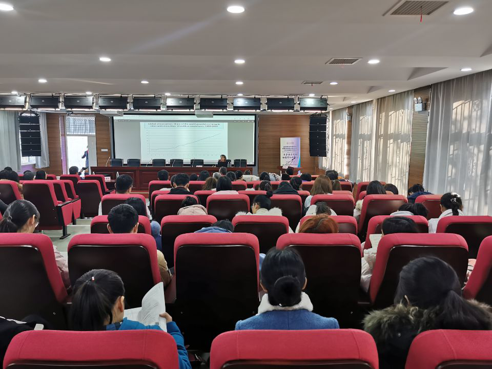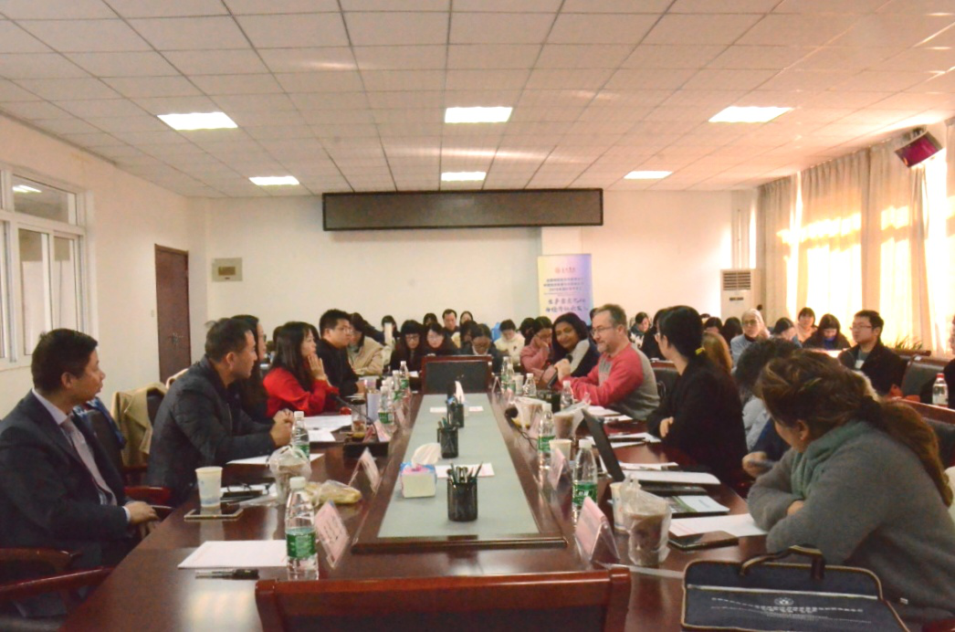 图1.科内尔教授进行演讲 纽芬兰纪念大学方涛教授、巴基斯坦费萨拉巴德政府学院社会学系助理教授萨达夫·马哈茂德博士(Dr.Sadaf Mahmood)、尼泊尔国际山地综合发展中心(ICIMOD)移民研究专员阿米娜·马哈詹博士、合肥师范学院胡然博士、沈阳联合产权交易所经理孙巍博士、安徽利诚信丰商贸有限公司徐郡鹿总经理、中德经济发展与研究创新中心赵西主任、经管学院副教授江玉荣博士、副教授吴应宁博士、副教授朱成科博士等国内外专家在后面两个环节进行深入交流和探讨。