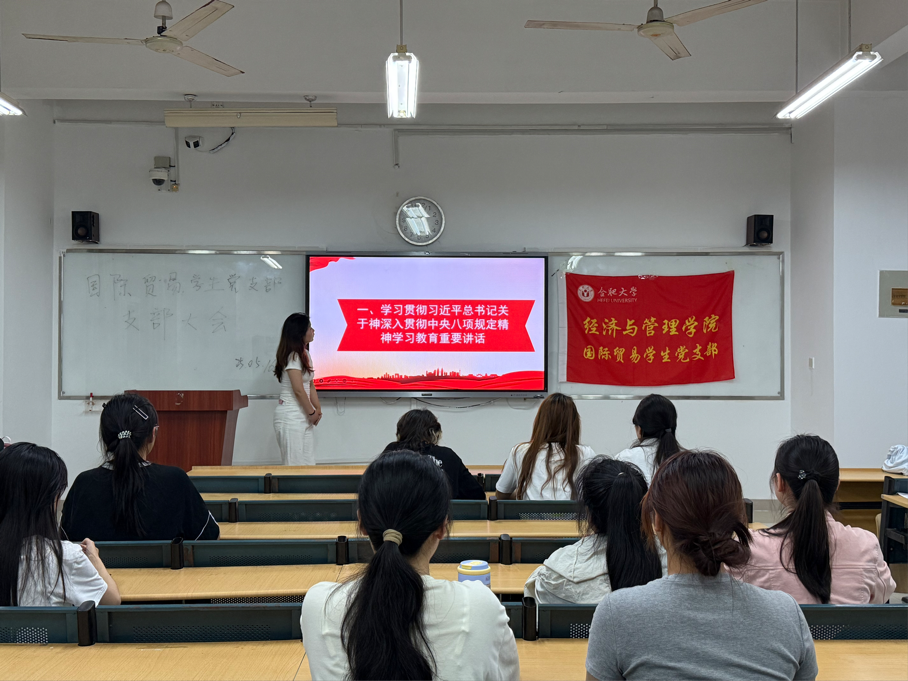 5月16日,经济与管理学院国际贸易学生党支部顺利召开党员大会。此次党员大会重点学习中央八项规定及其实施细则精神,并通过反面典型案例教育引导全体党员坚守廉洁底线,将纪律要求融入日常学习和生活。 大会伊始,党支部书记刘丹青带领全体党员深入学习中央八项规定及其实施细则精神。刘丹青书记强调,中央八项规定是长期有效的铁规矩、硬杠杠,作为学生党员,要时刻保持高度的政治自觉,从身边小事做起,将中央八项规定精神落到实处,严于律己,以实际行动推动作风持续向好,为营造风清气正的校园环境贡献力量。