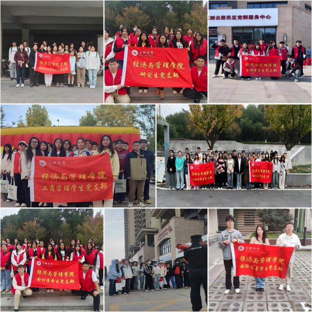 为加强党团联系,不断强化入党积极分子服务担当意识,2024年11月,各学生党支部联系第十一期入党积极分子开展了系列志愿服务活动。 物流与供应链学生党支部和国际贸易学生党支部组织入党积极分子开展了“文明出行,规范停车”志愿服务活动;金融学学生党支部和工商管理学生党支部组织入党积极分子联合耕云社区开展了“消防宣传进社区 筑牢安全防火墙”科普宣传志愿服务活动;会计学学生党支部、经济学学生党支部和研究生党支部组织入党积极分子前往南艳湖公园开展了“美化环境,志愿先行”的志愿服务活动。