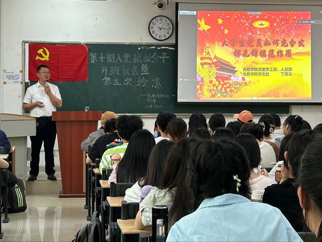 2024年5月14日,经济与管理学院分党校第十期入党积极分子培训班第五课于一期4栋103、107教室同时举行。本次培训课程由学生处处长丁增云担任主讲,我院全体第十期入党积极分子参加此次培训。 课上,丁增云从先锋模范作用发挥的思想条件和程序保证等方面展开讲述,随后对大学生党员先锋模范作用的内涵进行了解读。丁增云强调,各位入党积极分子要做政治上的标兵、学习上的表率、工作上的典范和生活中的榜样,充分发挥入党积极分子的骨干作用、带头作用和桥梁作用。最后,丁增云与同学们进行了深入的交流与讨论,并对入党积极分子提出了殷切希望。学员们深刻认识到了作为一名入党积极分子,应在工作和生活中充分发挥先锋模范作用,争做优秀的时代新人,坚守初心,砥砺前行,不负时代赋予的重任。 此次培训,不仅提高了入党积极分子的理论水平和政治觉悟,也为他们今后更好地发挥党员作用提供了重要的指导和帮助。 (经济与管理学院 撰稿人:陈诗琴 初审:王晨森 复审:余宏强 终审:倪泽强)