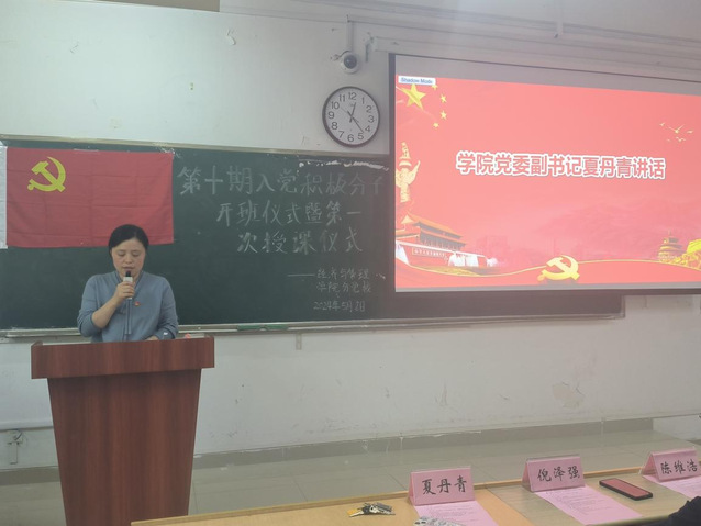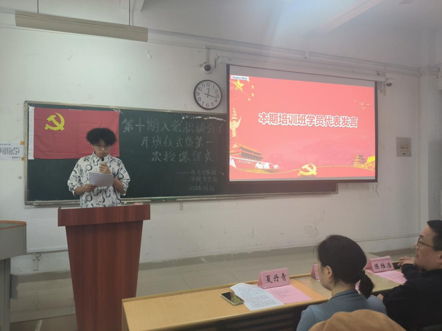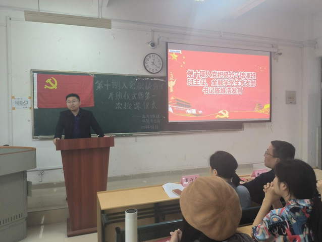为加强入党积极分子的培养,提升学生党员的发展质量,2024年5月8日中午,经济与管理学院分党校第十期入党积极分子培训班开班典礼暨第一课在4栋103、107教室同时举办,经济与管理学院党委书记倪泽强、党委副书记夏丹青、第十期入党积极分子培训班班主任王晨森、陈维浩及247名入党积极分子参加典礼。 开班典礼上,第十期入党积极分子学生代表23级财务管理三班李琦同学,分享了自己对中国共产党的深刻认识并承诺在党课学习中严于律己、努力学习。随后,支部书记陈维浩对本期培训班学员提出纪律要求,鼓励学员认真学习,领会党课知识内涵,并在日常学习、生活等方面争当先锋模范。最后,夏丹青副书记作动员讲话,她希望同学们珍惜本次党课学习机会,端正入党动机,树立为共产主义事业奋斗终生的理想信念。