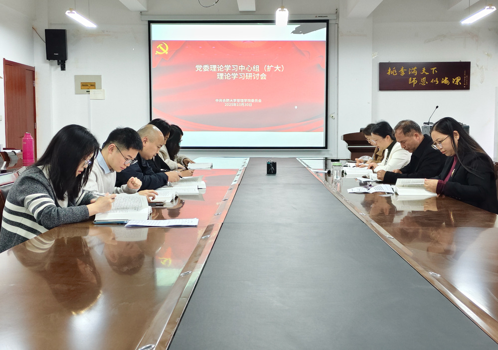 2025 年 10 月 30 日下午,管理学院在一期 6 栋二楼会议室召开党委理论学习中心组(扩大)学习研讨会,学院党政班子全体成员、组织员、各党支部书记参会,会议由学院党委书记刘金平主持。