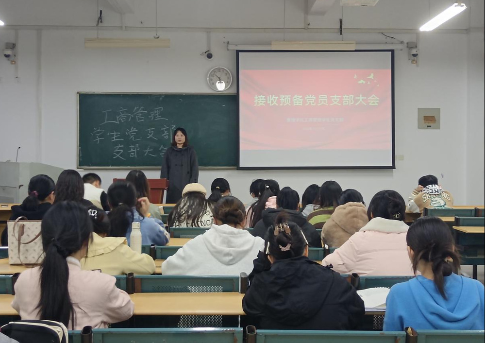2025年11月11日,管理学院工商管理学生党支部在6-101室召开党员大会暨接收预备党员支部大会。 会议伊始,刘丹青书记带领支部全体党员深入学习领会党的二十届四中全会精神,强调全体党员要筑牢思想根基,坚定政治立场,发挥模范带头作用。
