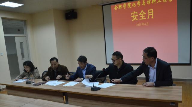 在学校职能部门领导和全系教师的见证下,董强代表化工系与各教研室主任签订了安全责任书。接下来,各教研室主任将进一步落实本次安全月的教育内容,做好安全分析与安全教育。