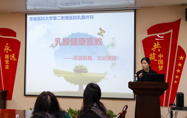 面对乳腺癌现状出席成员略显惶恐,对此,李佳强调现今科技快速发展,乳腺癌术后的乳房恢复技术早已成熟,广大女性朋友不必焦虑。讲座临近尾声,在场一位女教师主动请缨,自愿作为范例让李佳现场教授自我检查的方法。