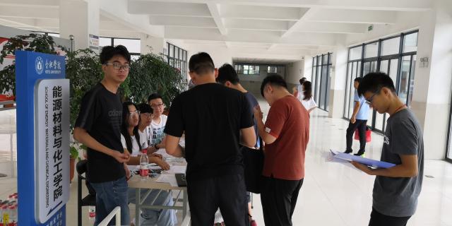 为做好2019级能源材料与化工学院研究生的迎新工作,确保新生顺利报到,院成立研究生迎新工作组,提前准备,对迎新工作的各个环节进行了细致周密的安排部署。按照迎新方案,提前通知新生准备研究生入学所需要的毕业证书以及学历验证报告等相关材料。早上八点不到,第一名来自南京的学生就来到生化楼报到,在报到台前有序交齐升学各项材料,领取新生入学报告单和入住单,然后到分配的宿舍报到入住。能源材料与化工学院院长董强、副院长胡坤宏上午前往报道地点,查看报道情况,对志愿者们的工作给予肯定,对报考开云的研究生们表示了欢迎。