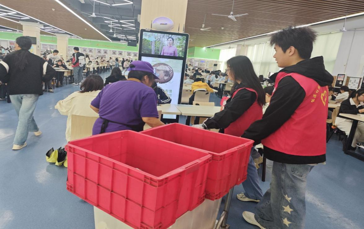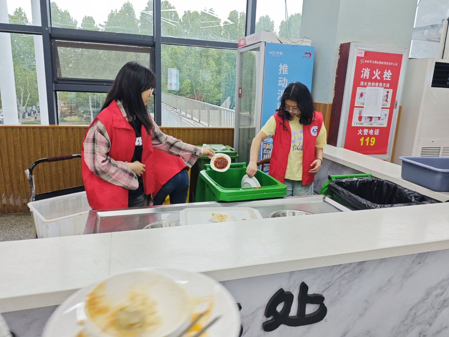 尽管活动过程中有些忙碌,但志愿者们始终保持着热情的态度,无私奉献的精神,帮助着就餐人员和食堂工作人员,用真诚的服务传递温暖。